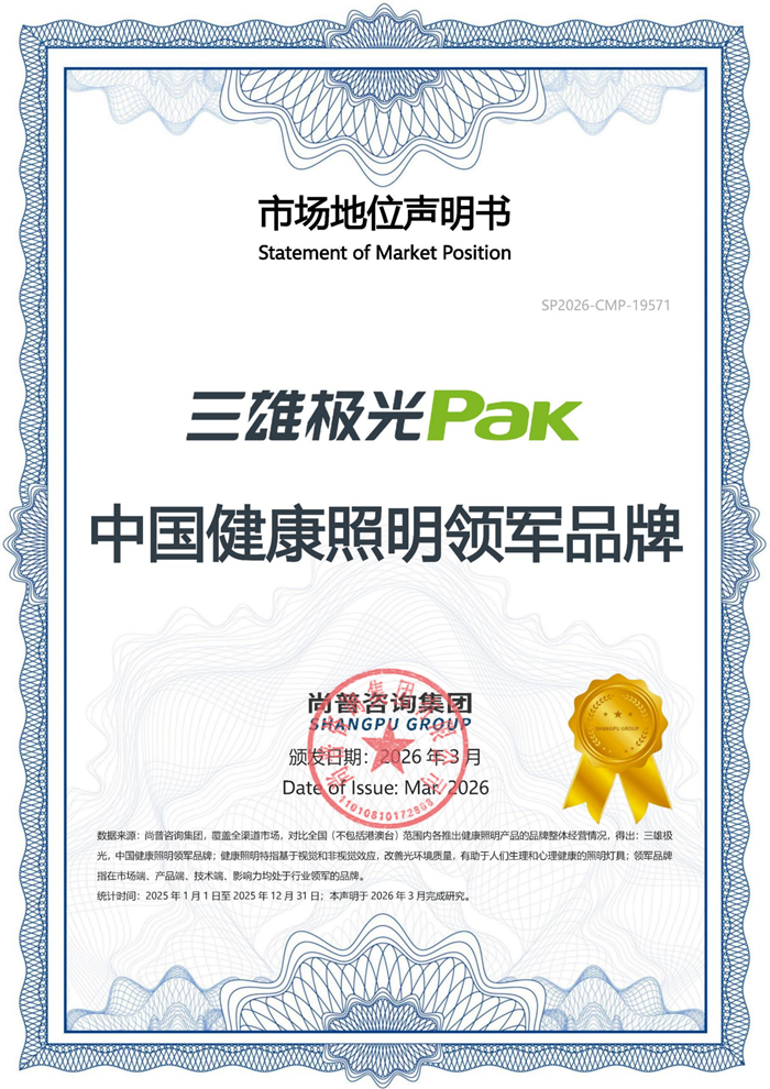 論壇環節落幕,專業研究咨詢機構尚普咨詢集團有限公司合伙人、華南區總經理汪繼欣登臺,為三雄極光授予了“中國健康照明領軍品牌”認證證書。這份專業認證,既是對三雄極光二十余載深耕光健康領域、堅守品質初心的高度肯定,也是對企業持續引領行業創新、推動產業升級的殷切期許,彰顯了三雄極光在健康照明領域的標桿地位與領軍實力。