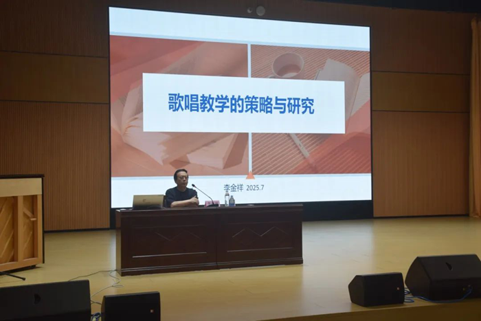 下午,北京市海淀區教科院美育研究中心專家李金祥主講《歌唱教學的策略與研究》。李金祥老師系統探討了音樂課教學依據與素質賦能,并就班級合唱的關鍵要點與實用技巧進行了深入講解,為推動班級合唱教學高質量發展提供了切實可行的方案。