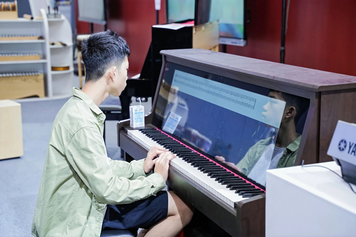 在《義務(wù)教育藝術(shù)課程標(biāo)準(zhǔn)(2022年版)》及教育部《關(guān)于全面實(shí)施學(xué)校美育浸潤行動(dòng)的通知》《關(guān)于加強(qiáng)中小學(xué)人工智能教育的通知》的指導(dǎo)下,金三惠積極響應(yīng)國家對美育和人工智能教育的號(hào)召,以科技賦能音樂教育的理念,為參展者帶來了耳目一新的體驗(yàn)。