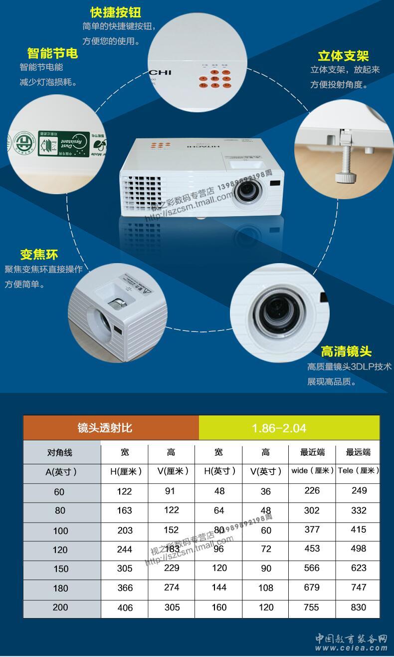 產品詳細介紹品牌: 日立 HITACHI 型號: HCP-DX300 用途: 商務教育辦公 顏色: 白色 聯系人:王經理 聯系電話:18523447687 產品介紹: 日立HCP-DX300商教投影機采用了單芯片DLP顯示技術,具有XGA分辨率,HCP-DX300擁有3000流明亮度,2500:1的對比度。另外,日立HCP-DX300加入了德州儀器“色彩”技術,進一步提升亮度和色彩鮮艷度,帶來更加流暢的影像效果。