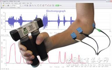 3、握力計:可以組合肌電圖傳感器同時使用,全面研究肌肉的活躍性。可測量握力強度、相對強度、肌肉疲勞和忍耐力。