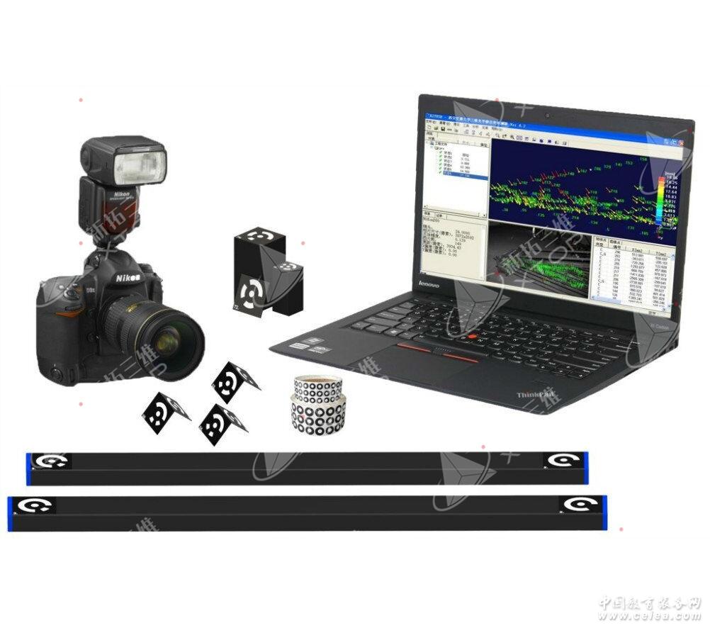 系統(tǒng)介紹 XTDP三維光學(xué)攝影測量系統(tǒng),使用高分辨率單反相機,通過不同角度拍攝多幅二維照片,基于工業(yè)近景攝影測量原理,重建測量對象表面的關(guān)鍵點(檢測點)三維坐標,可用于對中型、大型(幾米到幾十米)物體的關(guān)鍵點三維快速測量。與傳統(tǒng)三座標測量儀相比,沒有機械行程限制,不受被測物體的大小、體積、外形的限制,能夠有效減少累積誤差,提高整體三維數(shù)據(jù)的測量精度。可以代替?zhèn)鹘y(tǒng)的激光跟蹤儀、關(guān)節(jié)臂、經(jīng)緯儀等,而且沒有繁瑣的移站問題,方便大型工件測量。 系統(tǒng)主要組成:高性能單反相機、編碼標志點、非編碼標志點、標尺、計算機及計算分析軟件。