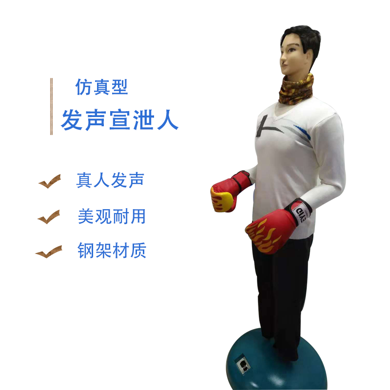 產(chǎn)品詳細介紹男180cm,女175cm,手臂姿勢可以任意調(diào)節(jié),可以擺出不同的被擊打姿勢,可以很好的引導宣泄欲望,手指采用五指分開設(shè)計,可握拳,可出掌,這些都是為了達到一個更為理想的宣泄對象。一體成型,增加了耐用性,采用進口高緩沖材料,一次性磨具成型,大大提供高了宣泄手感,在宣泄的同時可以很好的保護來訪者。底座采用一次型模具沖壓成型底座,底座尺寸:600*600*180mm,圓形底座,穩(wěn)定安全美觀。電路部分采用了最新的振動感應(yīng)技術(shù),可感受到極小的震動,12V安全電壓供電,發(fā)出多種不同的求饒聲。極具宣泄動力,釋放壓力 。 1、模擬真人設(shè)計,有五官,真人頭發(fā),可以修剪,真人大小,1:1的比例,標準身材,男身高1.8米,可擊打面積1.7米,女身高1.75米,可擊打大面積1.65米; 2、面部采用高分子硅膠合成材料制作,仿真人皮膚設(shè)計,富有彈性;真人頭發(fā),頭皮極度仿真; 3、真人真聲設(shè)計,當你打擊他的時候可以說出不同的話語; 4、人體采用高分子PU發(fā)泡一次完成,整體模具,標準,手感好,內(nèi)部有鋼架,抗擊打能力強,不宜損壞,采用全自動化新型機器,統(tǒng)一模具,材料來源自己獨特調(diào)配,采用特質(zhì)高熱壓技術(shù)一次成型制作,形態(tài)穩(wěn)定,大小統(tǒng)一; 5、底座為金屬加海沙合制而成,自重40公斤,不易打倒。 6、內(nèi)部電路全新升級,采用最新的無線遙感技術(shù),不用插接220V電源線即可發(fā)聲,全身360°均可擊打。 |