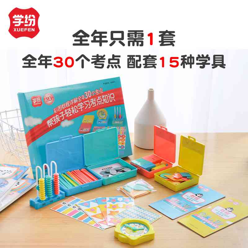 產品名稱:一年級數學學具全套 產品型號:A9901 產品規格:4盒*8個 適用對象:小學一年級學生 配套學具:計數器1個,數學小棒100根,紙質棒卡10小張,數字卡27小張,圓片10個,學習幣(硬幣)26個,學習幣(紙幣)30張,購物卡12小張,分類卡32小張,百數表1張,位置學習卡1張,鐘點學習器1個,立體圖形14個,平面圖形16個,橡皮筋2條,收納盒4個,教程2份。