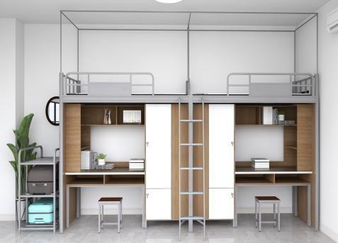 產(chǎn)品詳細(xì)介紹1、規(guī)格:L4000mm×W900mm×H2085/2885mm 2、床邊立檔:立柱采用 60mm×60mm×1.2mm 棱形管,與 20mm×1.2mm 圓管、25mm×25mm×1.2mm 矩管、 25mm×50mm×1.2mm 矩管套用立柱上下兩端加專用內(nèi)塞,保證架體與地面接觸無聲,防止學(xué)生擦掛。 3、床中立檔:立柱 60mm×60mm×1.2mm 方管、25mm×25mm×1.2mm 矩管套用 4、床橫梁:床梁 85mm×40mm×1.2mm 刀型材 5、床鋪橫撐:30mm×20mm×1.2mm 矩管七根 6、床前后方和床立柱連接采用卡扣式連接 7、床護(hù)欄:25mm×25mm×1.2mm 方管和 15mm 三聚氰胺飾面板套用,高 300mm。 7 四人間 (兩人 位爬梯 式)連 體公寓床 8、床梯:20mm×40mm×1.2mm 橢圓管;橫管 25mm×25mm×1.2mm 方管,帶防滑塑膠踏板,踏板下襯 1.5mm 厚 冷軋鋼板,防滑踏板尺寸: L320mm×W75×D15mm,踏板上帶 12 顆夜光顆粒; 9、蚊帳架:φ16mm×1.0mm 圓管和 19mm×1.0mm 圓管套用,連接部位必須有螺栓固定 10、衣柜:規(guī)格L600mm×W750mm×H1690mm,柜體分上下二層,上層為儲物空間,下層為掛衣空間 11、學(xué)習(xí)桌:桌面規(guī)格 1133mm×600mm×25mm,以優(yōu)質(zhì) E1 級環(huán)保中纖板為基材,面貼 0.7mm 厚優(yōu)質(zhì)環(huán)保防火 板,桌面正面封邊采用中空E 型鋁合金嵌入式封邊,倒鴨嘴邊; 12、桌下儲物柜:規(guī)格L400mm×W450mm×H725mm,結(jié)構(gòu)設(shè)計為上抽下柜。 13、雙面五層側(cè)書架:規(guī)格L480mm×W750mm×H1690mm,桌上三層為書架,桌下兩層為鞋架 14、正面書架:寬度 240mm,長度與書桌匹配 15、所有柜門、抽屜面板均帶明鎖暗扣型鎖扣,便于維修更換 16、所有板材均為 15mm 厚 E1 級環(huán)保三聚氰胺板,封邊采用 1.5mm 優(yōu)質(zhì)同色PVC 熱熔膠封邊; 17、床鋪板:采用 12mm 厚 E1 級環(huán)保實木多層板。 18、衣柜、書架、桌下儲物柜底部須加 80mm 高防潮架,采用 20*20*1.0mm 矩管。 19、本項目所有鋼制件表面必須經(jīng)過嚴(yán)格的打磨、拋光、除油、除銹、陶化烘干處理后,高壓恒溫環(huán)氧樹脂固 體粉末靜電噴涂處理。 |