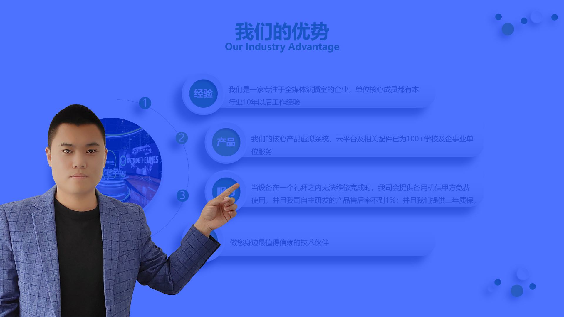 產(chǎn)品詳細(xì)介紹 北極環(huán)影微課/慕課系統(tǒng)不需要大規(guī)模拍攝空間,用虛擬摳像技術(shù),配合教師準(zhǔn)備的數(shù)字教材,將教師人像結(jié)合在教學(xué)所需的場景,無論是電子板書、多媒體影片、教學(xué)簡報、課程圖片等,搭配自動錄制控制系統(tǒng),控制攝影機(jī)的開啟、錄制工作,全自動化,全智能化無人值守操作,一人獨立完成教學(xué)視頻的制作及剪輯。