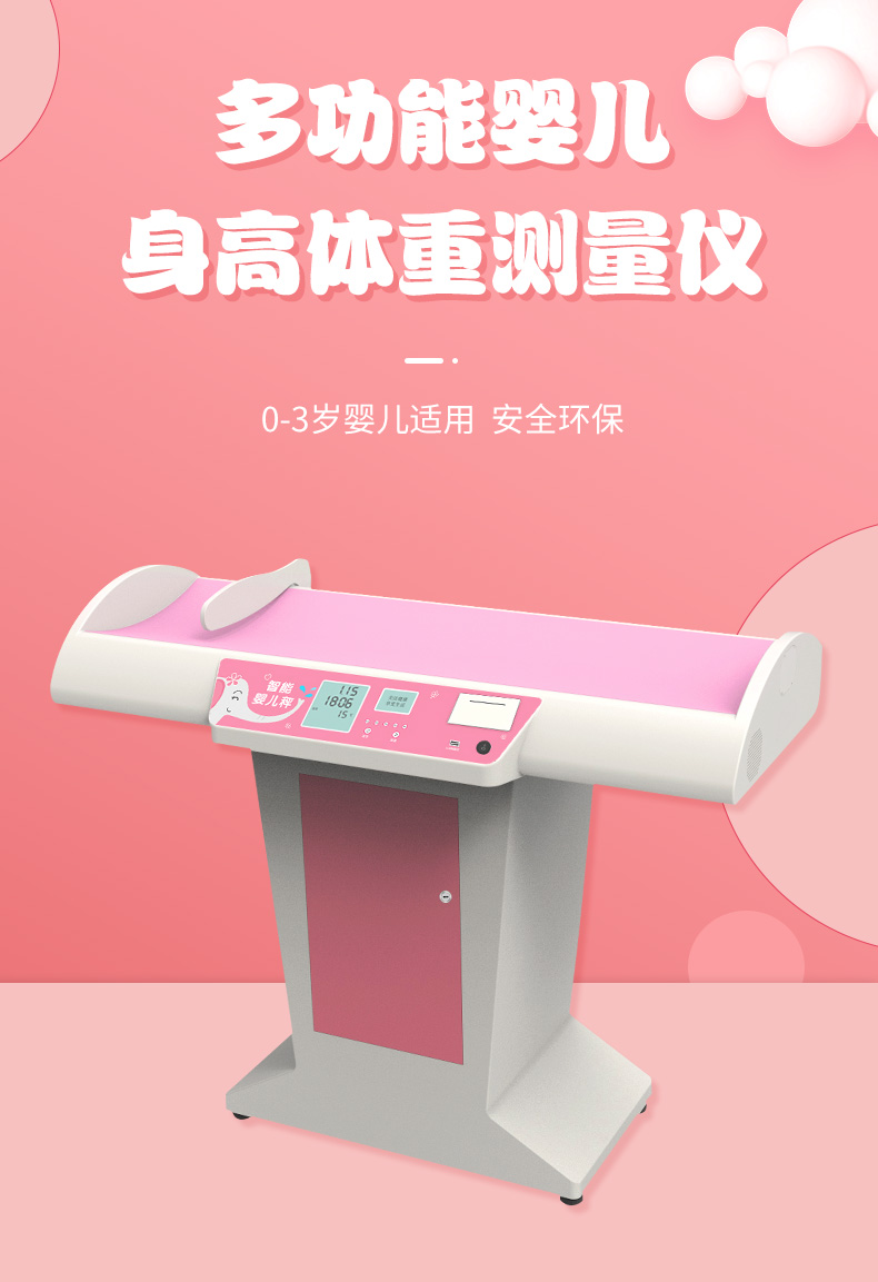 產品詳細介紹超聲波無接觸測量身高、潔凈、衛生,測量速度快,測量精度高,外觀豪華上檔次; 數據輸出格式:提供RS232接口(標配),方便連接電腦;也可以支持無線藍牙傳輸(選配) 評價系統:提供后臺評測系統,方便家長了解兒童的成長曲線和健康分析; 體重測量方式:雙精密平衡壓力傳感器稱重; 身高測量方式:采用美國進口超聲波傳感器加滑動擋板; 測高范圍:20-100cm, 分度值:0.1cm; 稱重范圍:0.1-50KG,分度值:0.01kg; 測重傳感器:高精度度、高靈敏、高性能精密平衡梁式壓力傳感器; 選配拓展:底座柜子,熱敏打印機,無線藍牙2.0/4.0,腳踏開關(標配); 雙液晶屏顯示:*采用兩個高清液晶屏顯示: 5寸高清液晶屏待機狀態下顯示當前日期、時間和溫度,測量完畢后屏幕顯示身高、體重、溫度,大字體超高清顯示,非常方便醫護人員查看測量結果。 3寸液晶屏上待機狀態下顯示用戶單位名稱(比如:河北省人民醫院)和歡迎語;檢測有重量時顯示操作提示。測量狀態下顯示測量提示語,測量結果顯示二維碼,另外還可以掃屏幕上的二維碼,測量結果直接發送到用戶手機上,可直接進入評價系統查看系統評測信息。 自動語音播報:清晰語音報出測量數值并且客戶可以根據使用情況設置提示語音。 清零操作:設置有清零按鈕,可實現去皮功能。 打印系統:微型熱敏打印機,全自動打印,還可設置打印醫療衛生單位名稱,例如:某某疾病預防控制中心某某社區。(選配) 測量速度:快速測量600次/小時。 電源:采用AC100V-240V電源,輸入寬電壓適合電壓不穩定地區。 消耗功率:工作時平均10W。 工作環境:溫度-10℃至+40℃ 濕度:20%-85%PH。 推薦使用:醫院兒保科、社區服務站、疾控中心、體檢中心、洗浴中心等部門和單位;