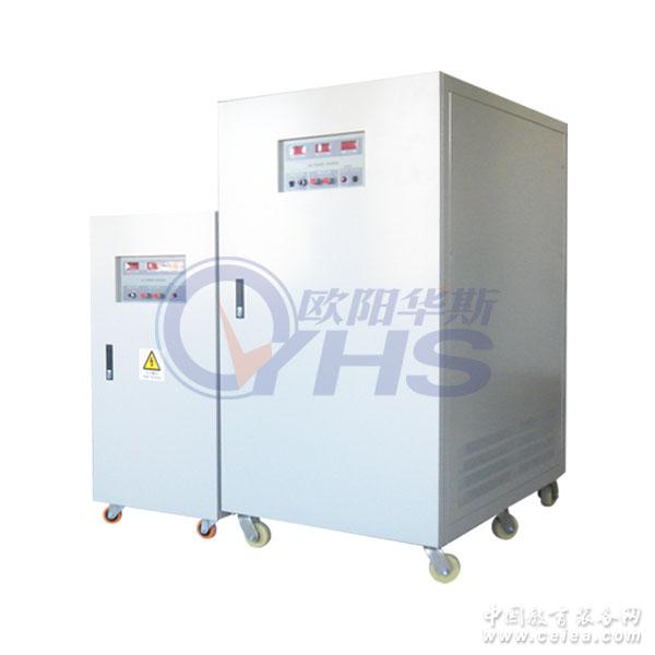 產品詳細介紹深圳市歐陽華斯電源有限公司專業生產變頻電源,單相三相變頻電源,可編程變頻電源,穩壓器,穩壓電源,60HZ變頻電源等特種變頻電源。我司有專業的研發團隊,良好的售后服務,產品得到國內外客戶的認同。 0755-23088216(總機) 變頻電源,穩壓器,穩壓電源:http://www.ouyanghuasi.com 產品共同特點: 單相交流輸入電壓:220V±15%.頻率波動范圍: 50HZ or 60HZ±10%。 三相交流輸入電壓:380V±15%.頻率波動范圍:50HZ or 60HZ±10%。 單相交流輸出電壓:低檔電壓:0-150V.高檔電壓: 0-300V.頻率: 47-63HZ連續可調,50HZ,60HZ,2F,4F,400HZ 三相交流輸入電壓:電壓:380V±15%.頻率波動范圍:50HZ or 60HZ±15%. 三相交流輸出電壓:低檔電壓 單相電壓0-150V,三相電壓0-260V連續可調.高檔電壓;單相電壓0-300V,三相電壓0-520V連續可調(可特殊定制做至1000V).頻率: 47-63HZ連續可調,50HZ,60HZ,2F,4F,400HZ 變頻電源超臷能力強,瞬間電流可承受三倍額定電流 ,故障時一鍵停機功能,反應速度快,反應時間在2ms以內.具有過流,過壓,過溫,短路,過載等多重保護及報警功能 ,高精度的穩頻穩壓功能,快速調節電壓,頻率主要元器件均采用原裝進口品牌,品質可靠. 整機性能 電源穩壓率:﹤1% 負載穩壓率:﹤1% 波形失真度:﹤1% 頻率穩定率:≤0.01% 效率:﹥90% 反應時間:≤2ms 波峰因子: 3:1 保護裝置:具有過壓,過流,超載,輸入欠壓,過高溫,短路等多重保護 顯示 顯示介面 數位式LED顯示 電壓:4位數,數位電壓表,解析度0.1V 電流:4位數,數位電流表,解析度0.1A 功率:4位數,數位瓦特表 頻率:4位數,數位頻率表 環境及其它 冷卻裝置:高速變頻風扇冷卻,強制冷風 工作溫度:0℃-40℃ 相對濕度:0.90%(非凝結狀態) 海拔高度:≤1500m 性能特點
