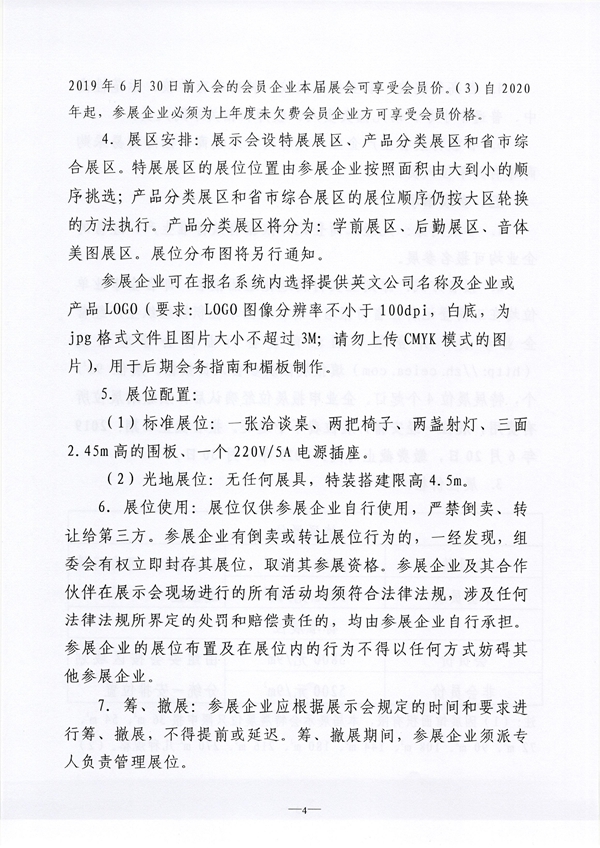 注:(1)因展館面積有限,本屆展示會特展展位只限申報36m2、54m2、72m2、90m2、108m2、144m2、180m2、216m2、270m2幾種規格。(2)2019年6月30日前入會的會員企業本屆展會可享受會員價。(3)自2020年起,參展企業必須為上年度未欠費會員企業方可享受會員價格。