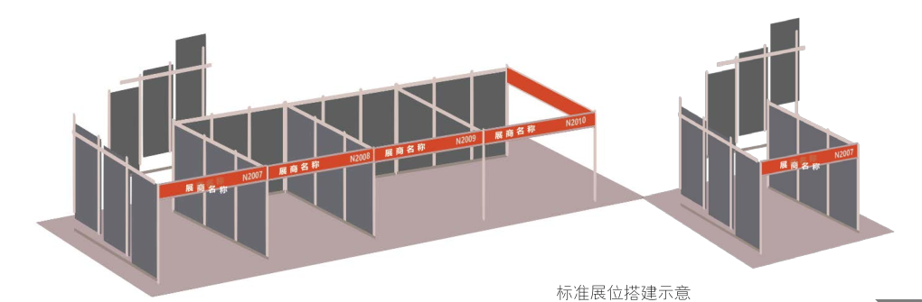 標(biāo)準(zhǔn)展臺(tái)由組委會(huì)指定展會(huì)搭建總代理負(fù)責(zé)建造,基本結(jié)構(gòu)為白色標(biāo)準(zhǔn)框架及圍板構(gòu)成。如果展商要另行增訂部分的設(shè)施及增加水、電、氣的使用,請(qǐng)參閱本手冊(cè)表格并向指定大會(huì)主場(chǎng)搭建服務(wù)商提前申報(bào),費(fèi)用參展商自理。