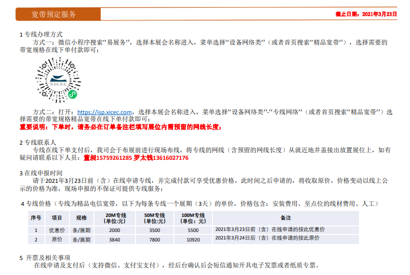 請于2021年3月23日前(含)在線申請專線,并完成付款可享受優(yōu)惠價格,此時間之后申請的,將收取原價,價格變動以線上公示的價格為準(zhǔn),現(xiàn)場申報的不保證可提供專線服務(wù);