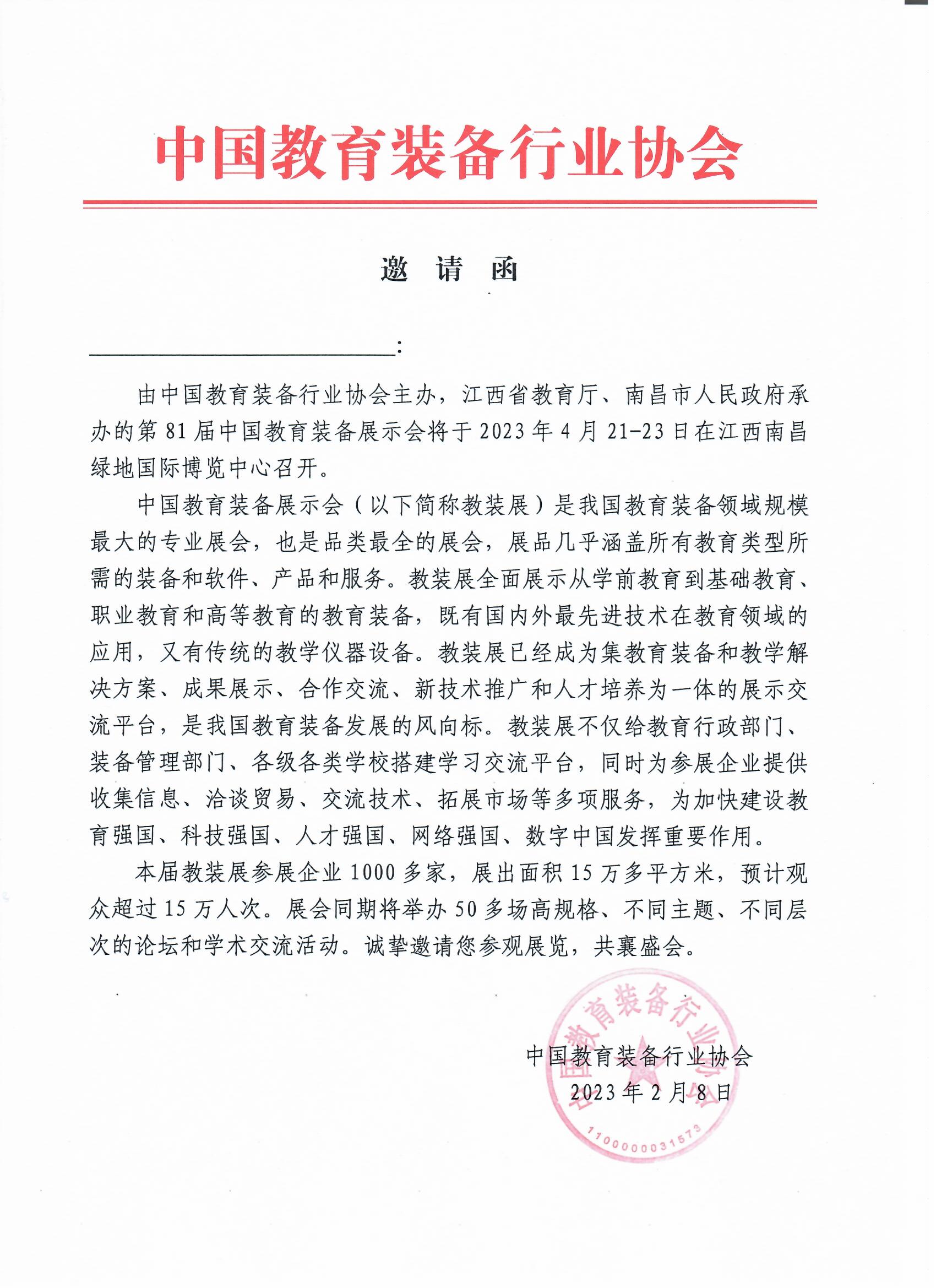 主辦單位:中國教育裝備行業協會展會時間:2023年4月21-23日展會地點:南昌綠地國際博覽中心